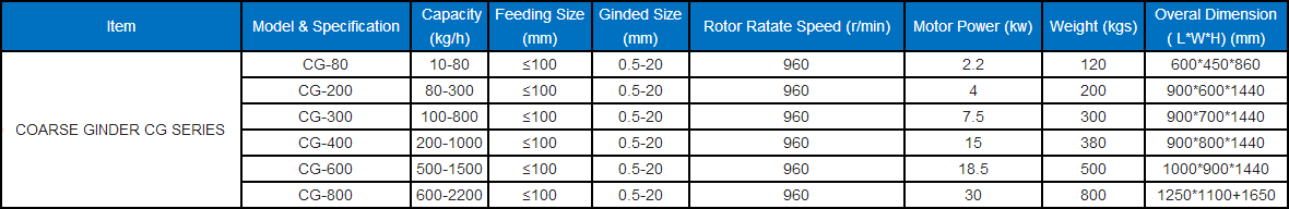 Main Technical Data of Coase Ginder Series: